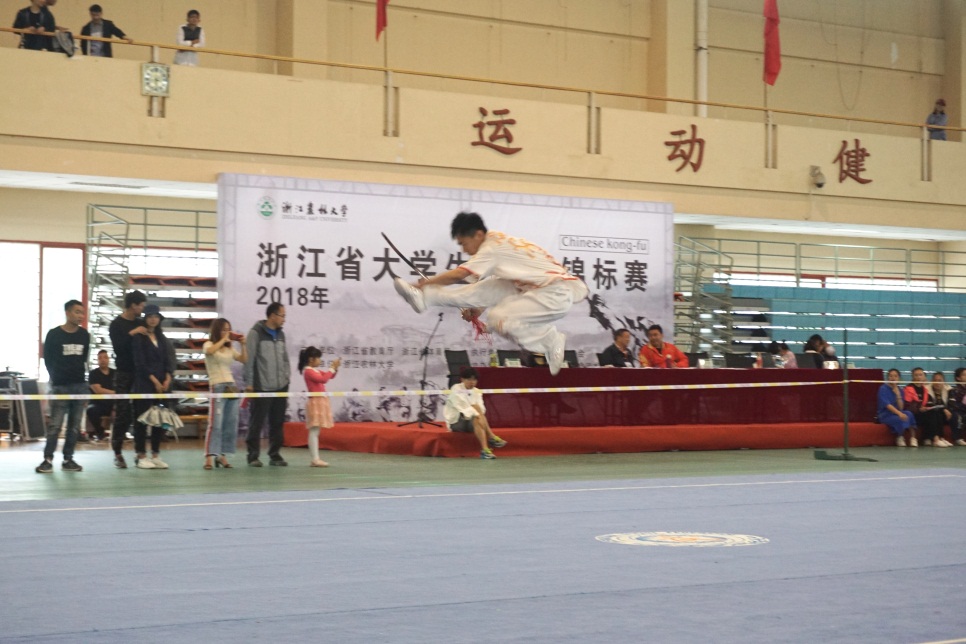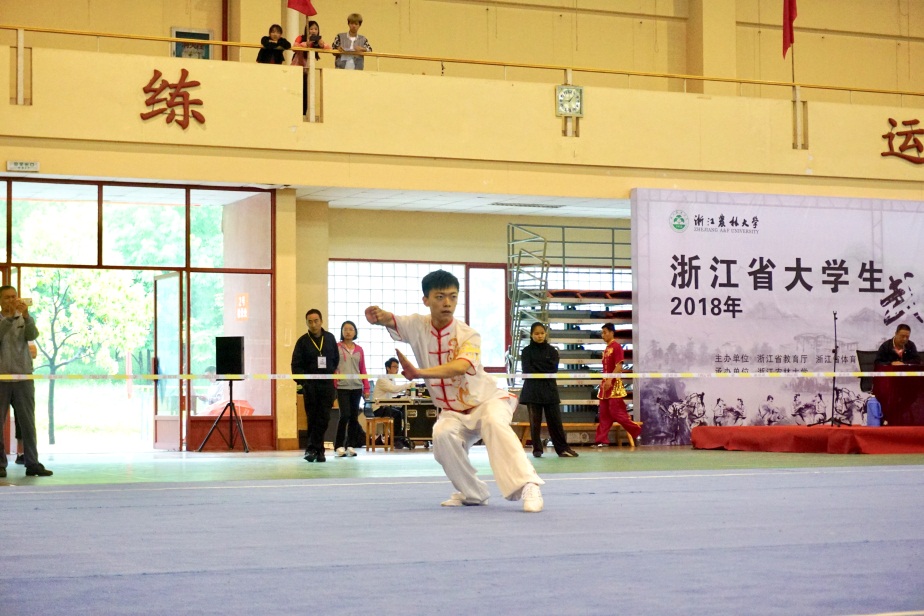 本次比赛为期两天,由浙江省大学生体育协会主办,旨在通过武术竞技,不断提高大学生体质健康水平和体育运动技能,促进大学生全面发展。比赛项目有自选长拳,南拳,太极拳,刀枪剑棍以及其他传统项目等。