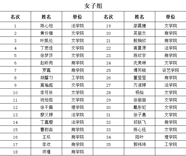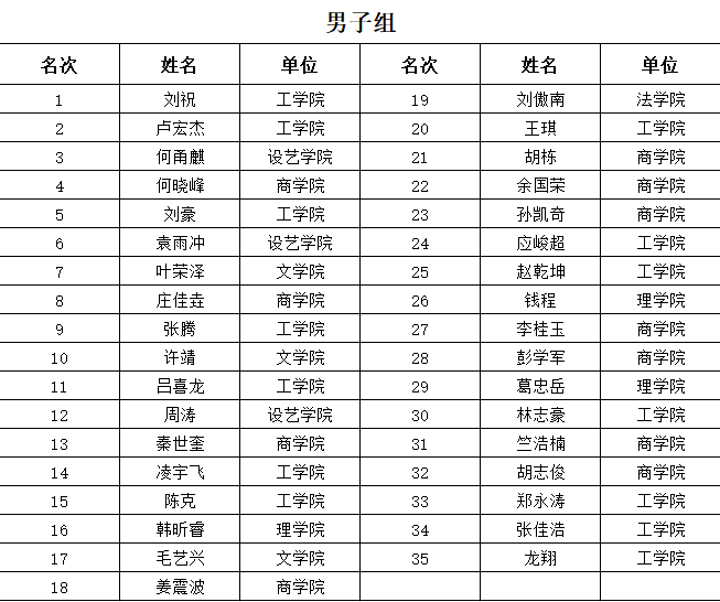 2020年浙江师范大学行知学院校园迷你马拉松成绩公告