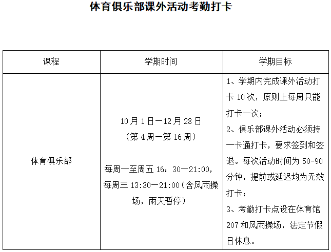 6、体育俱乐部课外活动考勤严禁将一卡通交由他人代打,一经发现取消本学期考勤成绩。