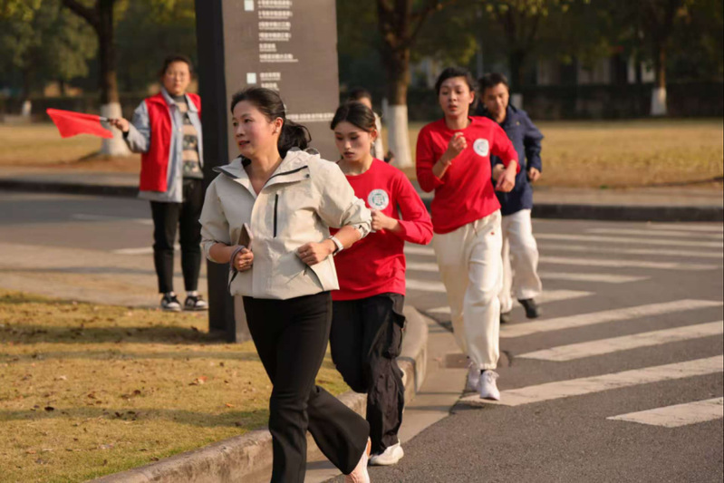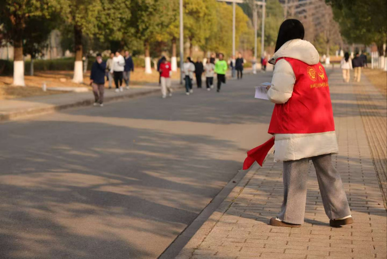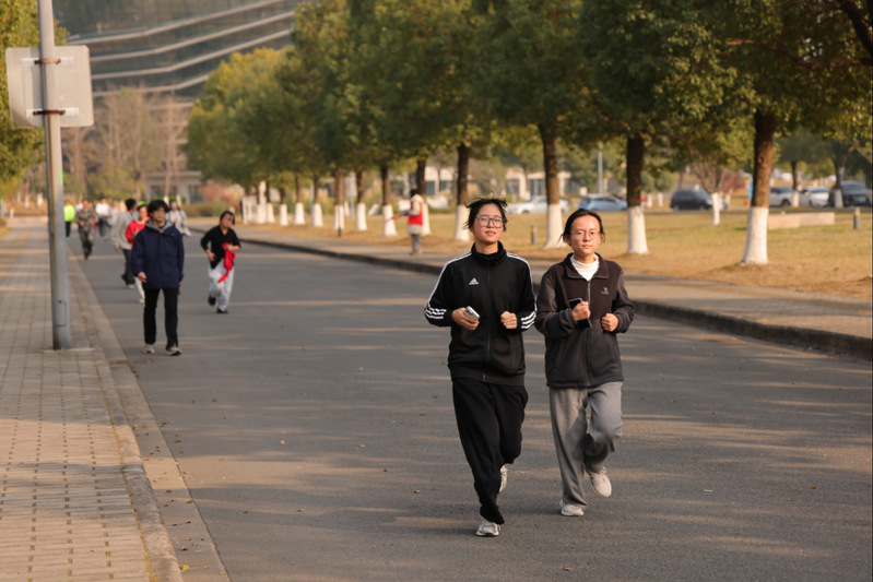 从田径场延伸至校园环路,2.76公里与10公里的赛道上既有全力冲刺的拼搏,也有相互鼓励的温情。一个个向前奔跑的身影汇聚成流动的风景,展现出坚韧、团结、昂扬的行知风貌。
